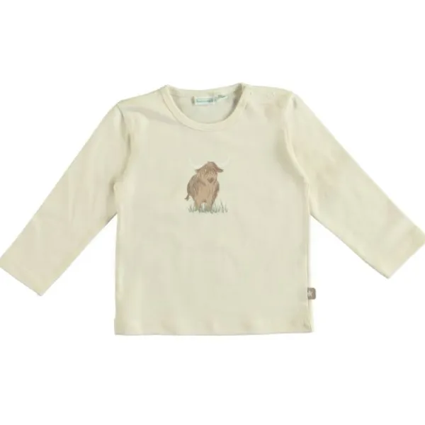 De charmante Highland‑cow print geeft een warme, natuurlijke uitstraling – perfect te combineren met een simpele legging of broekje voor een complete look.