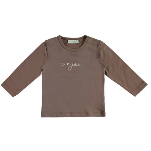 Een onweerstaanbaar zacht taupekleurig T‑shirt met de liefdevolle opdruk “i ♥ you” – perfect om je kleintje een warme uitstraling te geven.