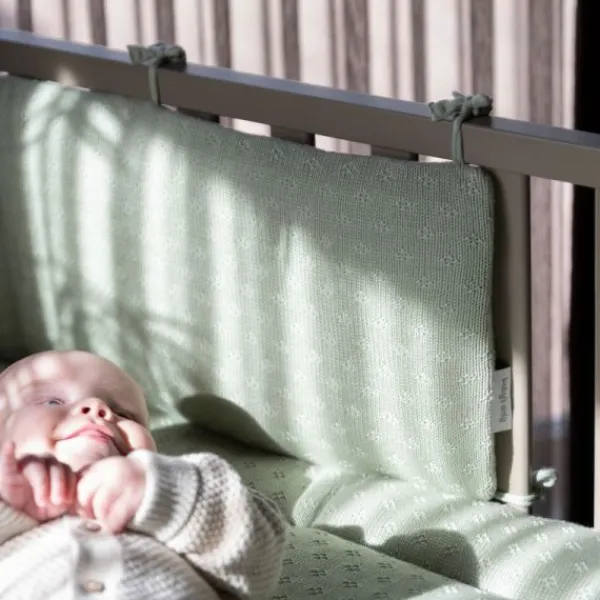 De Baby’s Only bedbumper Mood Laurel Green is niet alleen een mooie verfraaiing van het babybedje maar ook een hoofdbeschermer of stootkussen voor de spijlen van het ledikant.