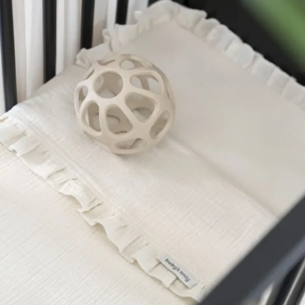 Het hoeslaken is gemaakt van 100% hoogwaardig katoen en voelt zacht aan op de tere babyhuid. Dankzij de elastische randen blijft het hoeslaken mooi op zijn plek, zelfs bij beweeglijke kleintjes. De subtiele ruffle-afwerking aan de randen voegt een luxe en verfijnde uitstraling toe die perfect past bij de rustige sfeer van de Calm collectie.