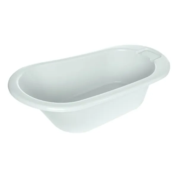 Het is een ovaalvormig badje met een geïntegreerd zitvlak. Aan 1 kant loopt het badje schuin af, zodat je je kindje gemakkelijk en comfortabel vast kunt houden.