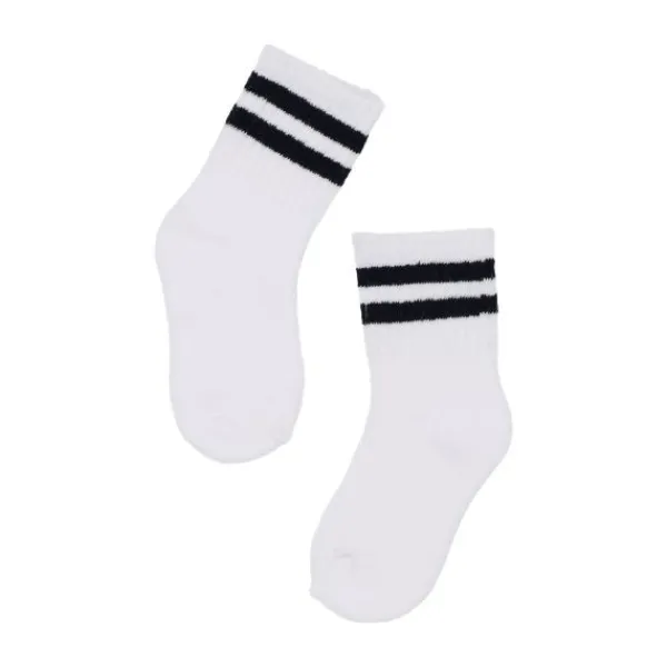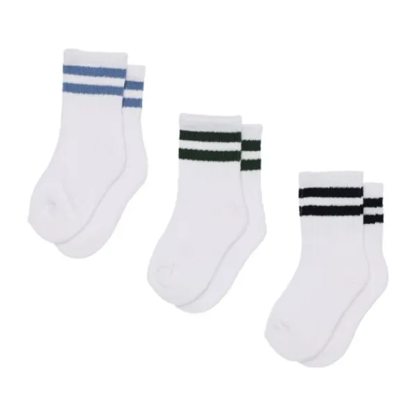 In deze set zitten drie paar sokjes in een frisse witte basiskleur, elk met een andere kleur dubbele sportstreep: blauw, donkergroen en zwart. Deze klassieke en veelzijdige kleuren maken de sokjes eenvoudig te combineren met allerlei babyoutfits. Praktisch, stijlvol en comfortabel – ideaal voor elke dag!