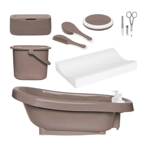 Met de Bébé‑Jou Thermobadset De Luxe – Mocha Mousse haal je een complete verzorgingsset in huis die alles biedt voor badderen, verschonen en dagelijkse verzorging van je baby. Deze uitgebreide set is ontworpen om badtijd gemakkelijk, veilig én praktisch te maken — en tegelijkertijd stijlvol te integreren in jouw badkamer of babykamer.