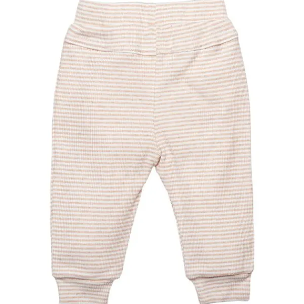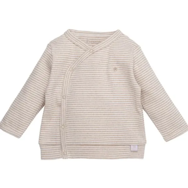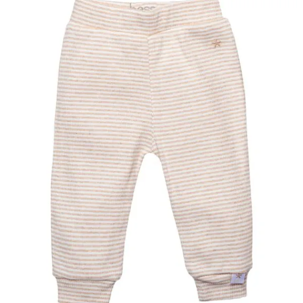 Een comfortabel broekje van Bess. het broekje heeft een nette zand kleur met witte horizontale streepjes. Goed te combineren en lekker comfortabel.