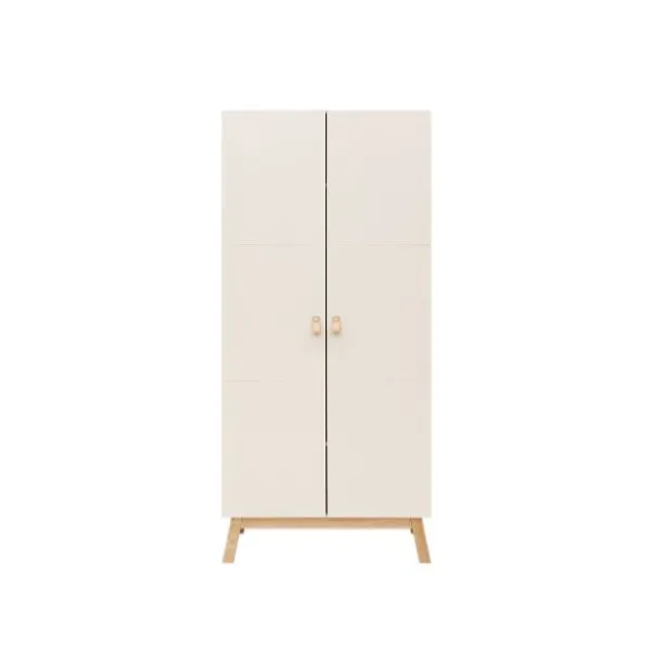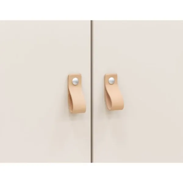 Deze ruime kledingkast Lines van Bopita staat op stevige, schuingeplaatste beuken poten. De romp en deuren zijn uitgevoerd is solide MDF. De deuren zijn voorzien van subtiele, horizontale groeven. De handgrepen zijn vervaardigd van leer in een naturel kleur.