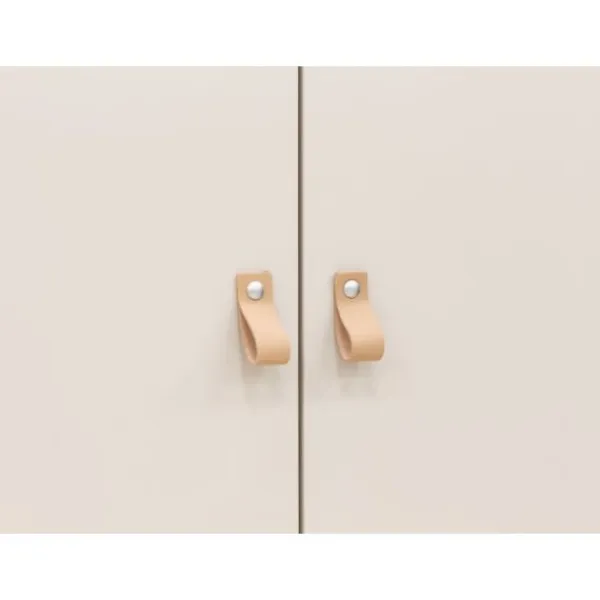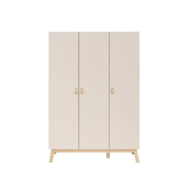 De Bopita 3-Deurskast – Lines – Dune / Naturel is een elegante en ruime opbergoplossing voor de kinderkamer. Met zijn stijlvolle combinatie van warme dune-tinten en naturel beuken accenten past deze kast moeiteloos in elk modern interieur. De schuingeplaatste poten geven het geheel een luchtige uitstraling, terwijl de horizontale groeven en leren handgrepen zorgen voor een verfijnde afwerking.