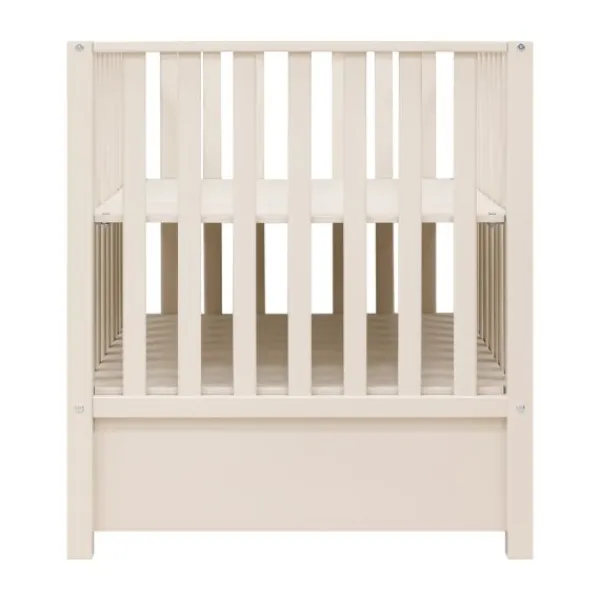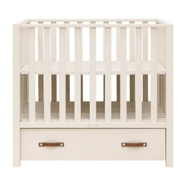 Een opvallend en handig detail van deze box is de ruime lade onderin, ideaal voor het opbergen van speelgoed, luiers of andere babyspullen. De lade is voorzien van ladegeleiders en netjes afgedekt, zodat alles stofvrij opgeborgen blijft. Dankzij de verstelbare bodem groeit de box mee met je kindje: begin met de hoge stand voor eenvoudige toegang en verlaag de bodem zodra je kindje zich kan optrekken.