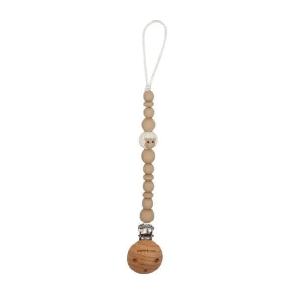 Dankzij de stevige houten clip bevestig je het speenkoord eenvoudig aan kleding, een autostoel of kinderwagen. Zo heb je altijd een speen binnen handbereik, waar je ook bent. De neutrale greige kleur is zowel modern als tijdloos en past perfect bij allerlei babyaccessoires. Kortom: een veilige en stijlvolle must-have voor dagelijks gebruik.