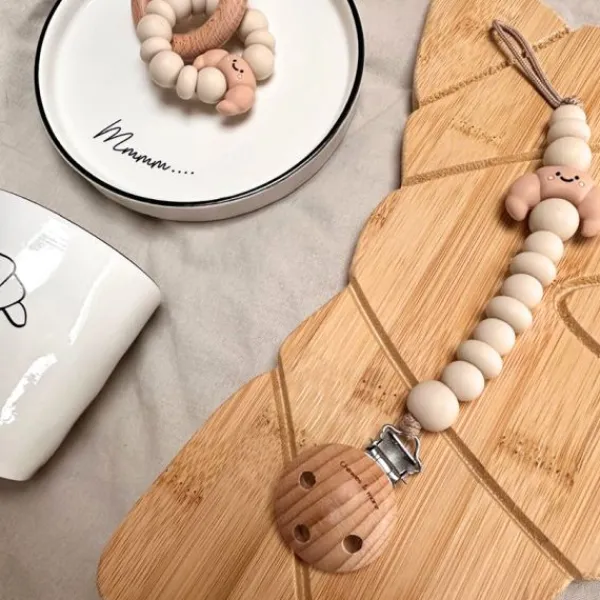 Het Chewies & More Speenkoord Croissant – Beige is een echte must-have! Dit stijlvolle speenkoord met unieke croissantkraal zorgt ervoor dat het speentje van je kleintje altijd binnen handbereik blijft. Handgemaakt in Nederland en perfect te combineren met elke outfit. Gemaakt van veilige, duurzame materialen zoals 100% food grade siliconen en FSC-gecertificeerd beukenhout. De zachte tint en schattige vorm stimuleren bovendien de zintuigen van je baby. Praktisch, veilig en super cute!