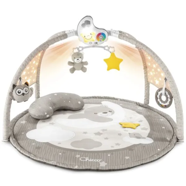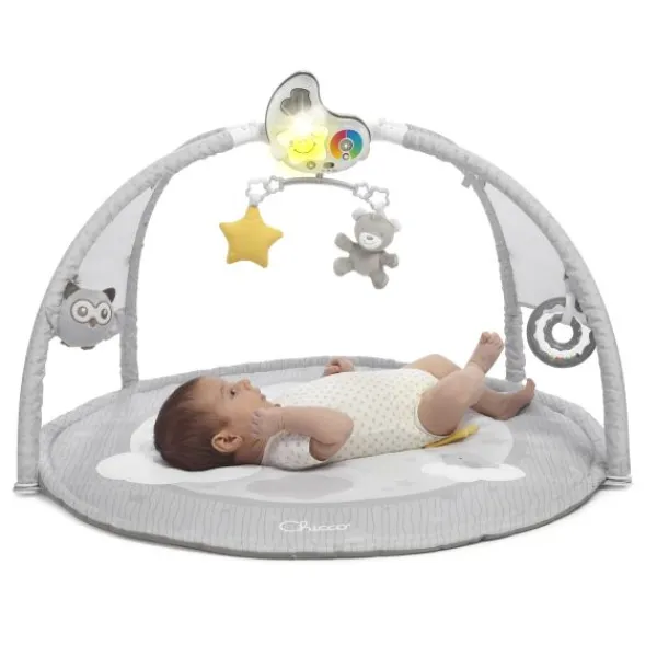 Deze vrolijke Babygym Kleurenplezier is een 3-in-1 gym met keurrijke projecties en leuke melodieën, geïnspireerd op cromotherapie. De innoverende babygym is geschikt om te ontspannen tijdens het dagelijkse leven. De 83 cm ronde speelmat heeft een kussentje voor de buik. De maanvormige projector is verwijderbaar en kan daardoor gebruikt worden als nachtlampje. De projecties en melodieën zijn aan te passen op de speel- en ontspantijd van je baby. Kies tijdens speeltijd voor de fun-modus. Hierin krijgt je baby warme kleuren en vrolijke jazzmuziek. Tijdens de entertainment- modus speelt de babygym New Agemelodieën en warme en koele kleuren voor een veelkleurige ervaring. Tot slot is er een relax-modus. Hierin kan je baby heerlijk ontspannen door middel van klassieke muziek en koele kleuren.