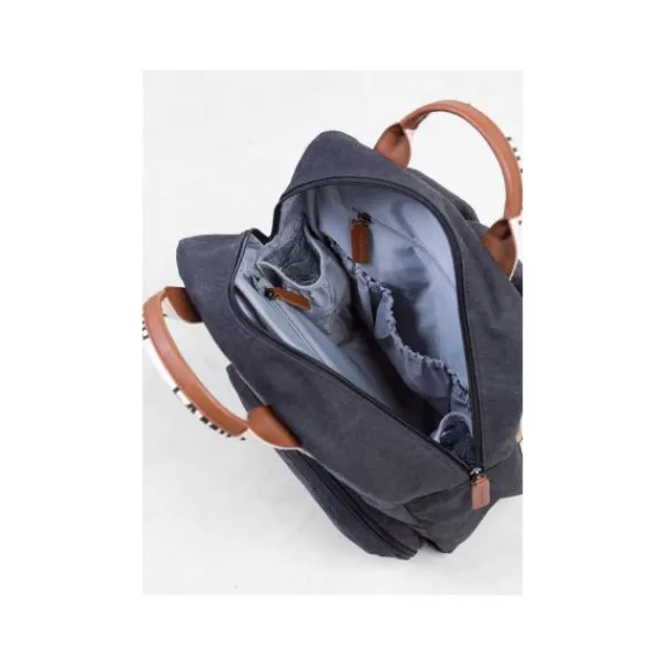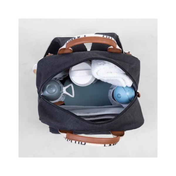 Hij is uitgerust met twee grote vakken en negen kleinere vakken. In een zakje met ritssluiting kun je vuile kleren opbergen als dat nodig is. In extra kleinere vakjes kun je de fopspeen van je baby, je portemonnee en je sleutels veilig opbergen. Twee isothermische vakken houden jullie drinken en snacks fris gedurende de dag. Als je kindje zich tijdens de lunch vuil maakt, komt het zakje aan de voorkant van de tas dat speciaal is ontworpen voor natte doekjes extra goed van pas. Je kunt er gemakkelijk bij, dus je hoeft nooit meer te zoeken naar natte doekjes! En natuurlijk is het verschoningsmatje ook inbegrepen.