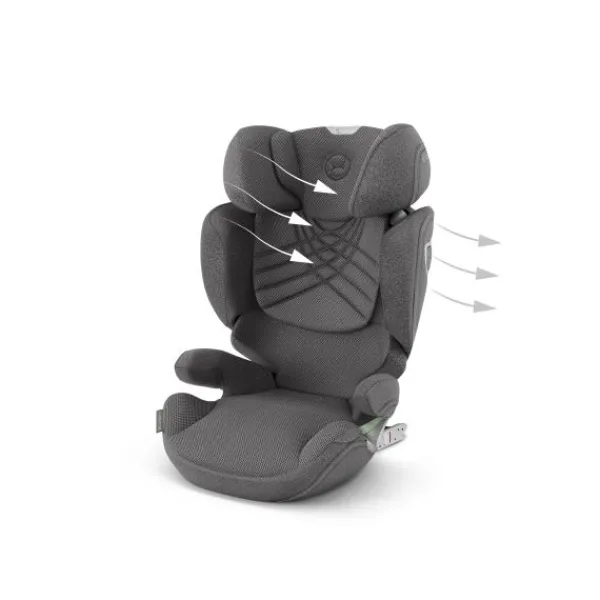 De Solution T i-Fix zit boordevol veiligheidsfuncties, zoals een gepatenteerde verstelbare hoofdsteun die helpt om het hoofd van je kind tijdens je reis in een veilige positie te houden, evenals geavanceerde Linear Side-impact Protection. Een verstelbare hoofdsteun en automatische breedteverstelling zorgen ervoor dat je snel kunt reageren op plotselinge groeispurten. En een verkoelend luchtventilatiesysteem houdt de ritten het hele jaar door aangenaam.