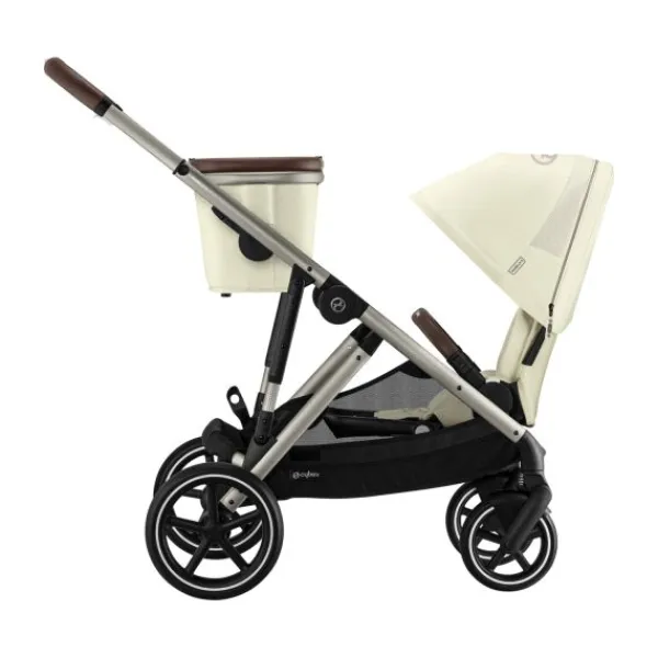 De Cybex Gazelle S Kinderwagen Black – Moon Black is stijlvol en geschikt voor kinderen tot 22 kg. Ook is de Gazelle S kinderwagen eenvoudig uit te breiden tot duo- of twin kinderwagen, zodat de wandelwagen heel makkelijk met je kindje meegroeit. De grote wielen van de kinderwagen zijn uitgevoerd met goede vering waardoor de kinderwagen zowel voor jou als voor je kindje prettig rijdt.