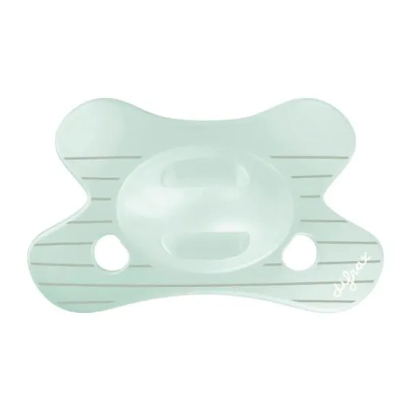 Het symmetrische vormgegeven zuiggedeelte wordt gemakkelijk geaccepteerd, ongeacht richting. Het vlindervormige schildje houdt de neus vrij, en dankzij de luchtgaatjes verdwijnt risico op irritatie rond de mond.