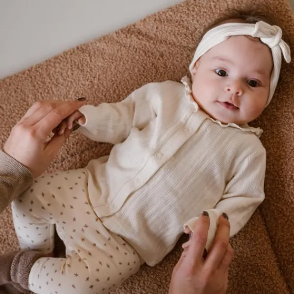 Dit comfortabele broekje van het merk Dirkje is offwhite van kleur en heeft een leuke print van blaadjes. De broek heeft een hoge taille. Leuk en lekker comfortabel!