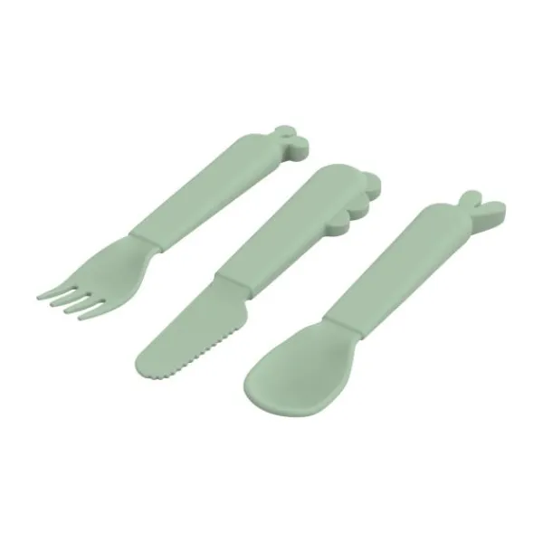 Met het Done by Deer Deer Friends Kiddish Bestek Green leert je kindje op een leuke en veilige manier zelfstandig eten. De set bestaat uit een vork, lepel en mes die speciaal zijn ontworpen voor kleine handjes, zodat ze gemakkelijk vast te houden zijn. Dankzij de afgeronde vormen is het bestek niet alleen comfortabel, maar ook veilig in gebruik voor jonge kinderen.