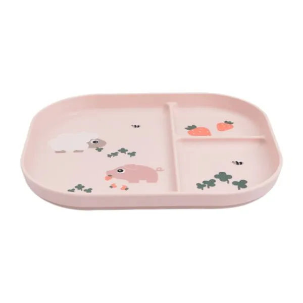 Maak etenstijd extra leuk en overzichtelijk met het **Done By Deer Tiny Farm Vakjesbord – Powder**! Dit schattige kinderbord heeft drie vakjes, waardoor verschillende voedingsmiddelen apart blijven en het eten nog aantrekkelijker wordt voor je kleintje. De vrolijke Tiny Farm illustraties met een schaapje, een varkentje en aardbeien zorgen voor een speels effect.