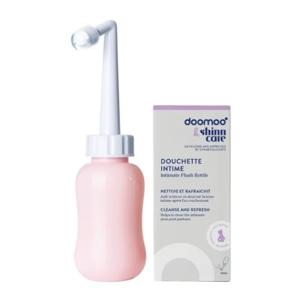 Maak kennis met de Doomoo x Shinncare Intieme Douche (spoelfles) 300 ml, een zachte en praktische spoelfles voor hygiënische en comfortabele verzorging van je intieme zone na de bevalling, tijdens de menstruatie of voor dagelijkse intieme hygiëne. Ideaal om op milde wijze te reinigen zonder wrijving, zodat je huid en slijmvliezen rust krijgen wanneer ze extra gevoelig zijn.