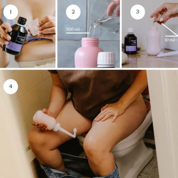 - Handige spoelfles voor intieme reiniging van perineum of vulvair gebied