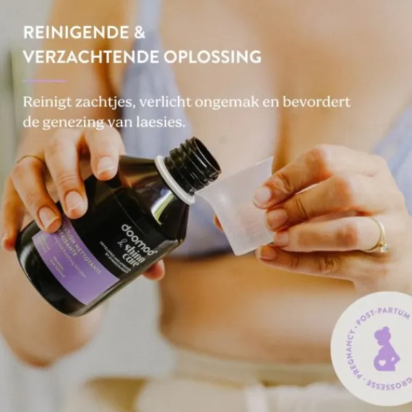 Maak kennis met de Doomoo x Shinncare Reinigende en Kalmerende Oplossing 200 ml, een milde verzorgingsoplossing die speciaal is samengesteld om je intieme zone zacht te reinigen en te verzachten, ideaal na de bevalling of bij irritatie, schaafwondjes of aambeien. De natuurlijke, verzorgende formule helpt ongemak, jeuk en roodheid te verminderen en ondersteunt het herstel van kwetsbare huid.
