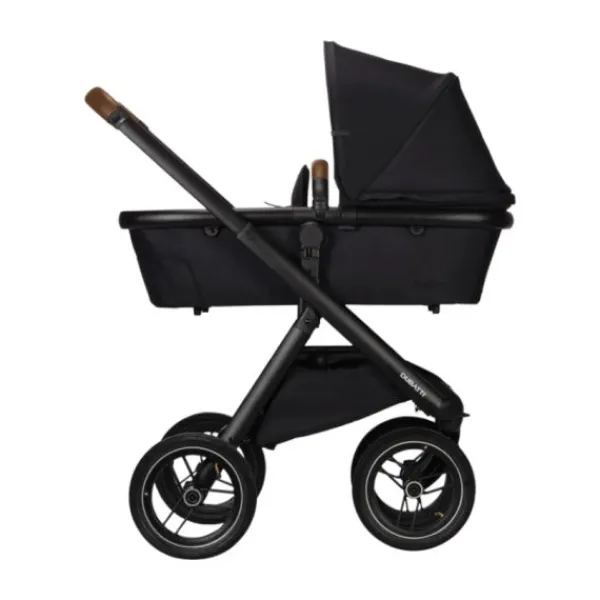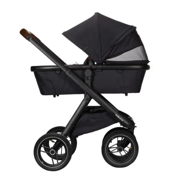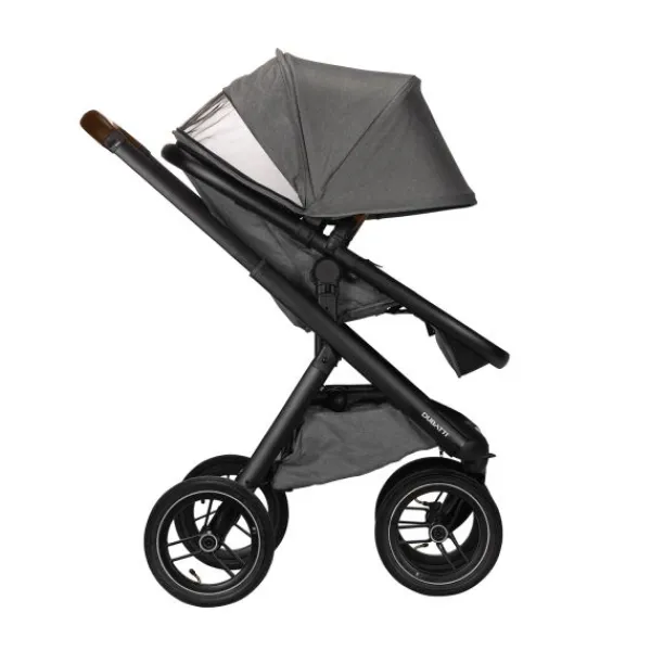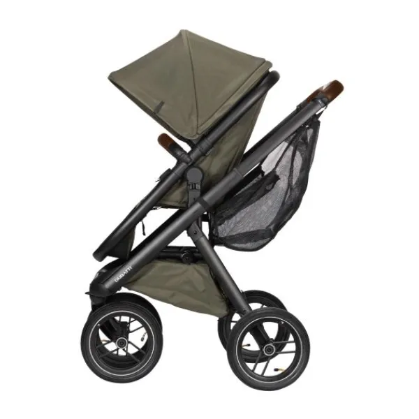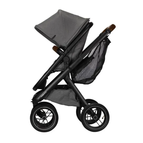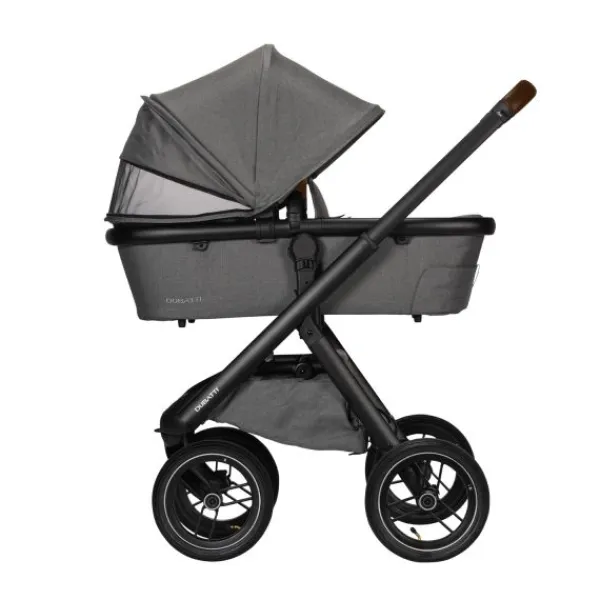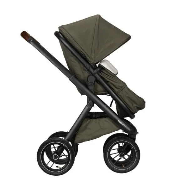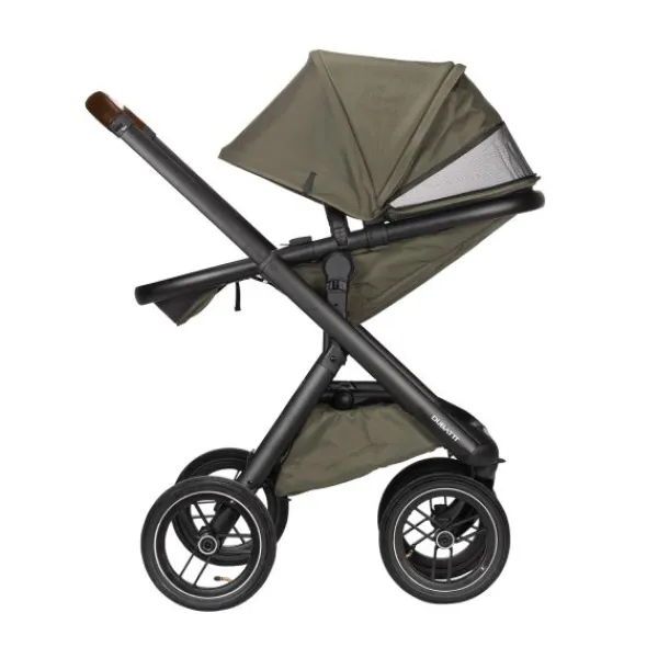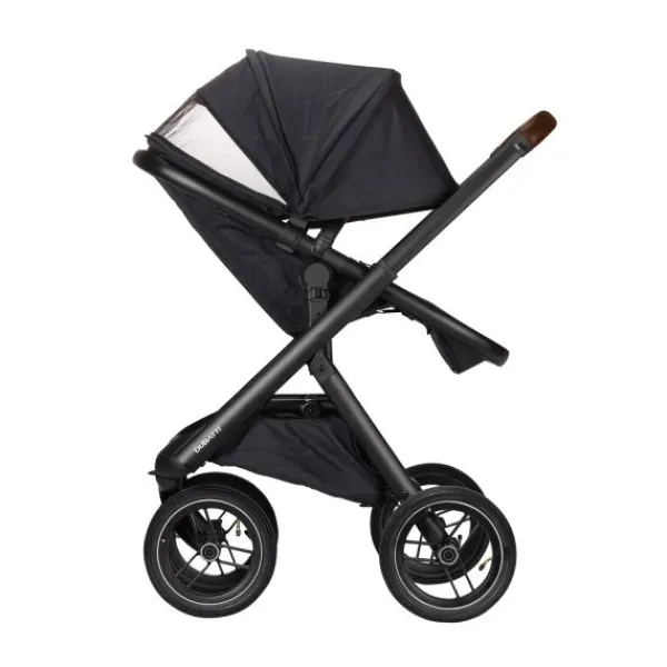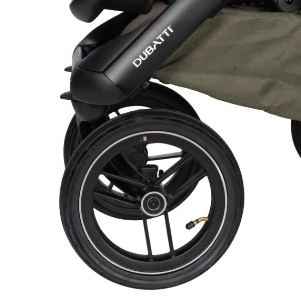 De Dubatti One E5 is dus zeer gebruiksvriendelijk. De wagen is met één hand in te klappen tot een compact en zelfstandig rechtopstaand pakket. Ook de veiligheidsbeugel is met één hand te openen. De kinderwagen wordt geleverd met luchtbanden die zorgen voor goede demping en soepele wandelingen over oneffen terrein zoals bospaden. De reiswieg is voorzien van handige vakjes aan de binnenkant zodat je ook kleine spulletjes kwijt kunt tijdens je wandeling. De binnenbekleding van de reiswieg is bevestigd met een rits en hierdoor verwijderbaar. De bekleding kun je eenvoudig reinigen met een handwas of op 30°C in de wasmachine.