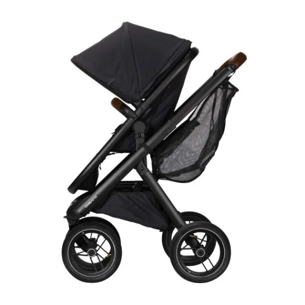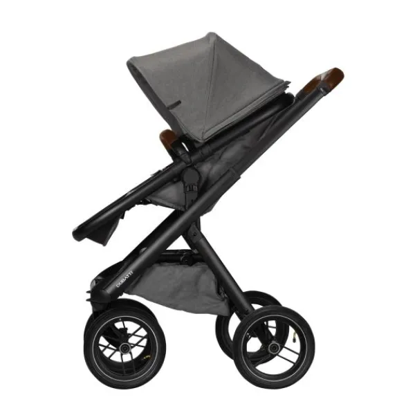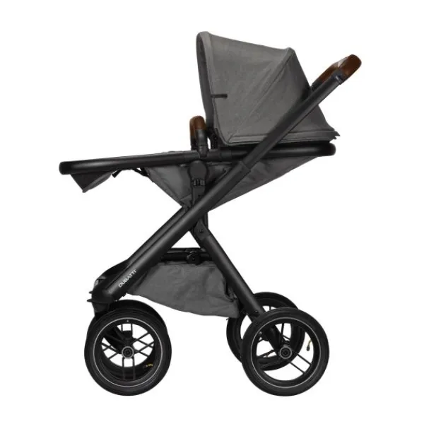 Frame, zitting, zonnekap, veiligheidsbeugel, reiswieg, voetenzak, XL boodschappennet, adapters en regenscherm.