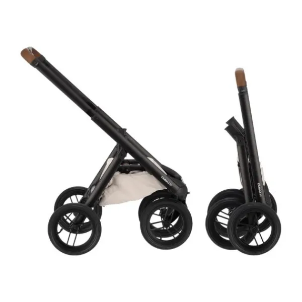 Het gebruiksgemak is tot in detail doordacht: zowel de reiswieg als het zitje zijn in hoogte verstelbaar, zodat je altijd over een perfecte tafelhoogte beschikt. De duwstang is verstelbaar in vier posities en afgewerkt met kunstleer, zodat iedereen comfortabel achter de kinderwagen kan lopen. Dankzij het compacte inklapsysteem kun je de kinderwagen eenvoudig met één hand inklappen tot een vrijstaand pakket – ideaal voor onderweg of op te bergen. De binnenbekleding van de reiswieg is wasbaar en gemakkelijk los te ritsen; het matrasje beschikt over een zomer‑ en winterzijde met zachte foamvulling voor optimaal ligcomfort.