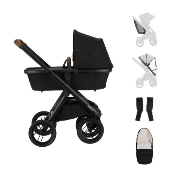 Met deze complete 2‑in‑1 set ben je direct klaar voor allerlei uitstapjes met je kindje. De combinatie van een reiswieg en omkeerbaar zitje zorgt ervoor dat je van baby tot peuter flexibel bent. Het frame is voorzien van luxe stoffen en kunstleer‑accenten, wat zorgt voor een luxe uitstraling. Dankzij de vier even grote geveerde wielen rijd je soepel op zowel stadswegen als onverharde paden. De set wordt verder aangevuld met handige accessoires zoals voetenzak, regenhoes, autostoeladapters én een ruim XL‑boodschappennet met harde bodem. Alles wat je nodig hebt is in één pakket aanwezig.