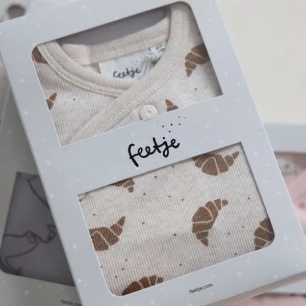 Laat je kindje heerlijk wegdromen in dit mooie boxpakje met croissantjes print!