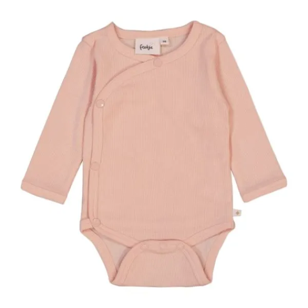 Deze mooie overslag romper is van het merk Feetje. Deze romper is geheel roze van kleur met handige drukknoopjes om je kindje gemakkelijk aan en uit te kleden.