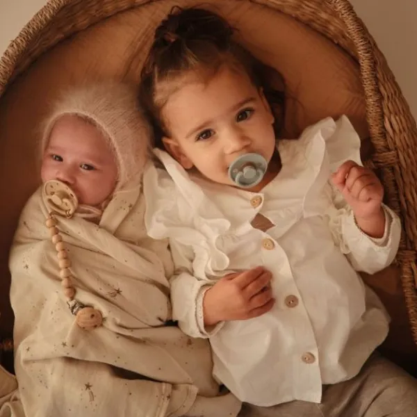 De fopspenen zijn gemaakt van 100% medische siliconen en bevatten een ventielsysteem dat zorgt voor een natuurlijke luchtstroom, waardoor huidirritaties rondom het mondje van je baby worden voorkomen. Het ergonomisch ontworpen schildje is licht gebogen, waardoor het perfect aansluit op het gezicht van je baby, terwijl er voldoende ruimte is voor de neus, zodat je baby comfortabel kan blijven ademen.
