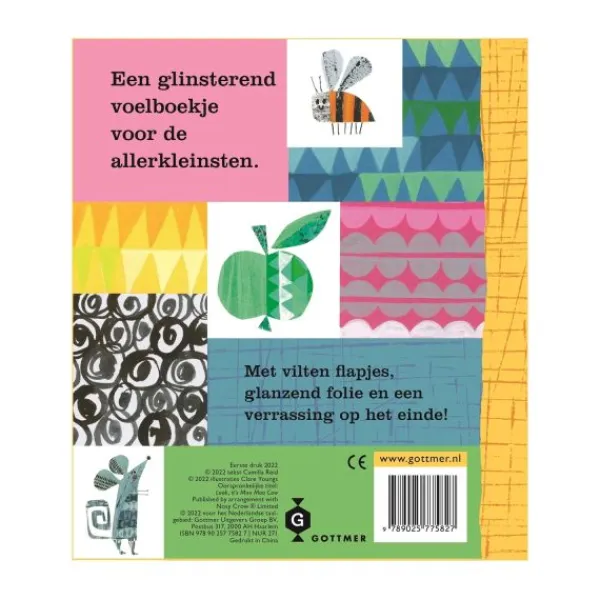 Het speelse voelboekje Boe boe, daar is Koe van Gottmer is speciaal gemaakt voor de allerkleinsten. Met vrolijke illustraties, stevige pagina’s en verrassende details maakt dit boekje het ontdekken van dieren een feestje. Je kindje leert op een speelse manier kennismaken met de koe en haar vriendjes. Het boekje bevat vilten flapjes, glanzend folie en zelfs een spiegeltje. Zo wordt voorlezen een interactieve ervaring die de nieuwsgierigheid prikkelt en de zintuigen stimuleert. Dankzij het stevige karton kan dit boekje tegen een stootje en is het perfect voor kleine handjes.