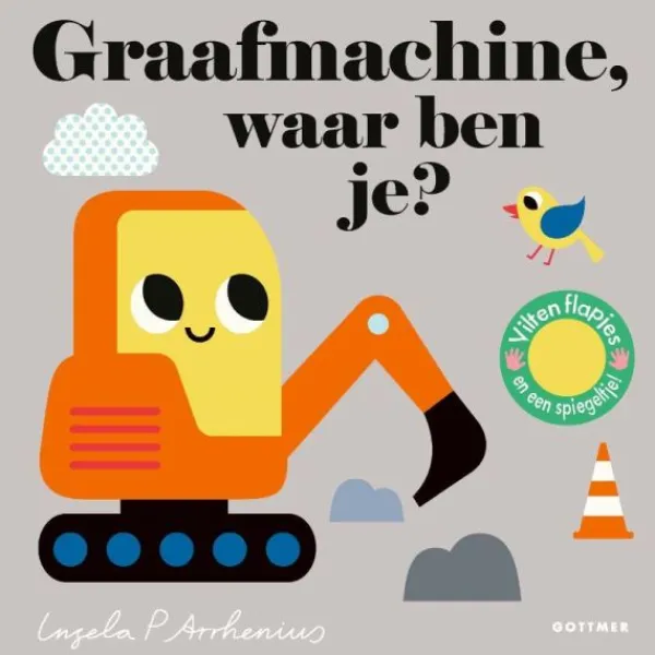 Het leuke voorleesboekje ‘Graafmachine, waar ben je?’ is geschreven door Ingela P Arrhenius. Door middel van dit boekje duiken peuters en dreumesen in de stoere wereld van de grote bouwvoertuigen. Veel kleintjes vinden deze voertuigen namelijk eindeloos spannend om te zien. Het boekje is gemaakt van stevig karton en zit vol met vrolijke, gekleurde, vilten flappen en kleurrijke illustraties. Hierdoor ontstaat een leuk interactief raadspel: waar zijn de kiepwagen, de bulldozer en de betonmixer?