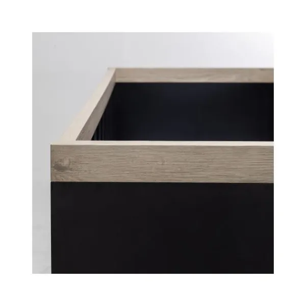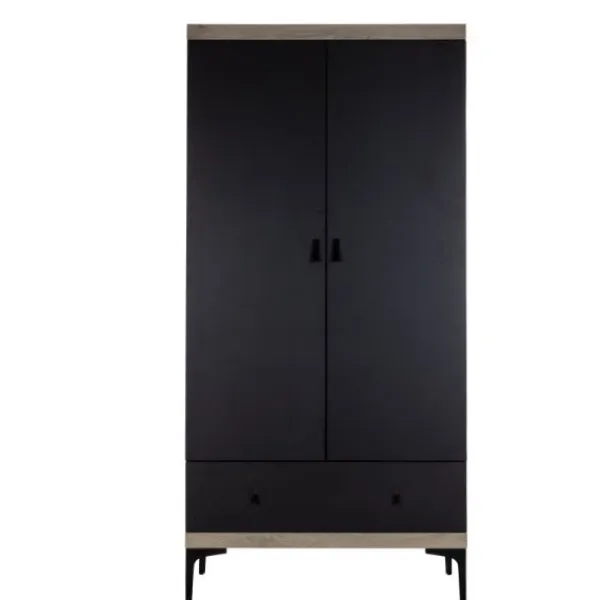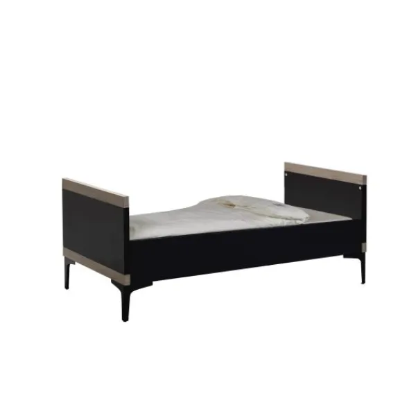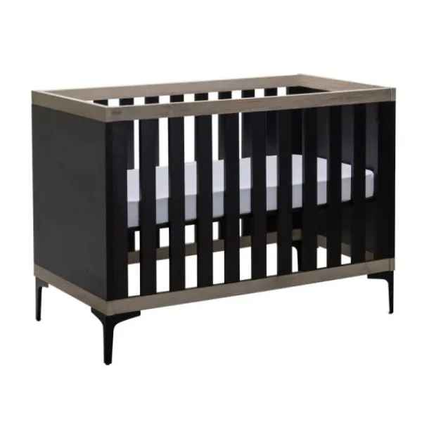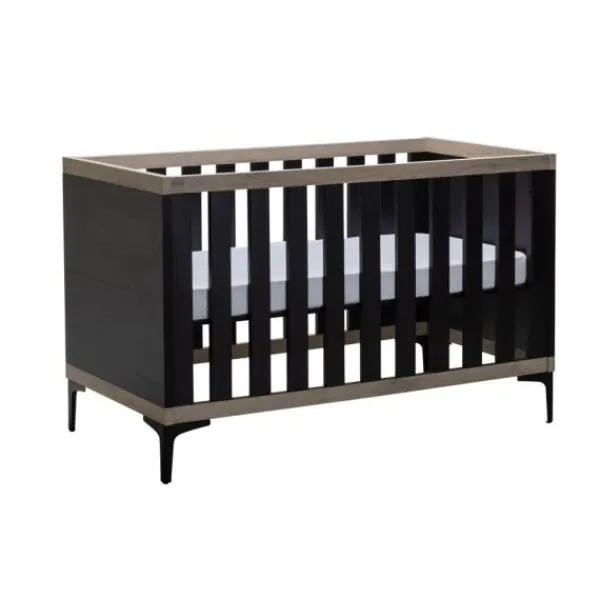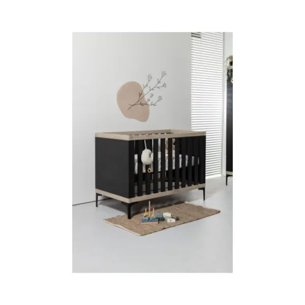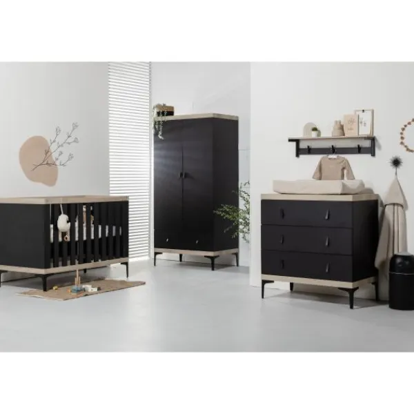De babykamer Strips van het merk Interbaby heeft een strakke, moderne look en is uitgevoerd in het zwart in combinatie met een eiken houtdecor. De meubels uit deze serie zijn gemaakt van MDF en zijn afgewerkt met zwart melamine en houtdecor fineer.