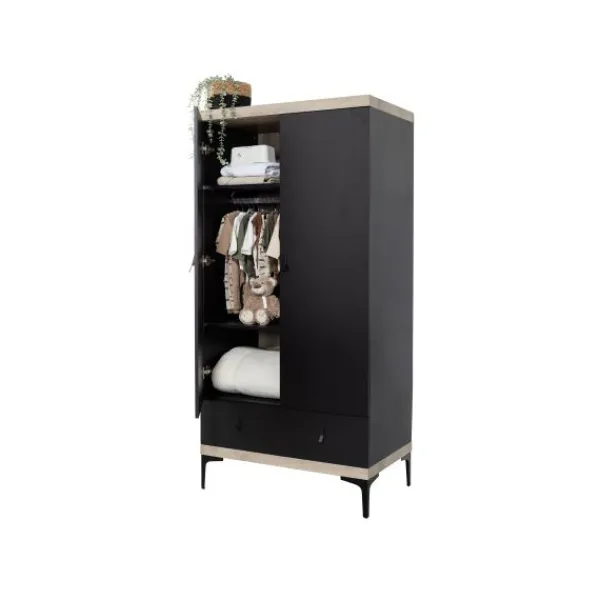 De hanglegkast beschikt over 2 deuren en 1 lade met soft-close (met 1x een kledingroede en 2x een legplank).