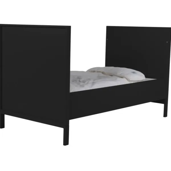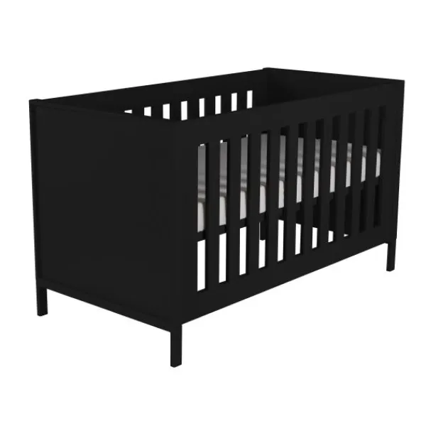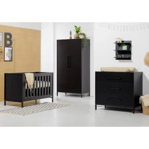 Babykamer Jupiter is een moderne strakke babykamer uitgevoerd in zwart gelakt MDF, met hoge metalen pootjes.