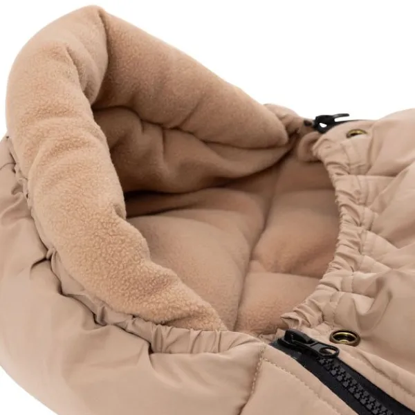 De voetenzak is gemaakt van hoogwaardige materialen en heeft een unieke “puffed” structuur in de subtiele Biscuit-kleur, wat zorgt voor een moderne uitstraling. Dankzij de ritssluiting kun je je baby snel en gemakkelijk in- en uitpakken. De binnenkant is gevoerd met zacht fleece, wat extra warmte biedt op koude dagen, terwijl de ademende buitenstof ervoor zorgt dat je kleintje niet oververhit raakt.