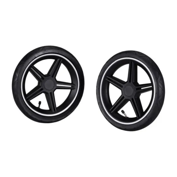 Met de juiste wielen kom je overal. Met deze luchtwielen voor alle terreinen op je kinderwagen staat zelfs de meest hobbelige ondergrond je avonturen niet in de weg. De robuuste, opblaasbare banden rollen soepel over geplaveide straten, bospaden en ruig terrein.