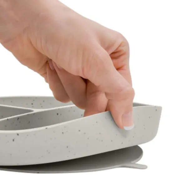 Met een ruime inhoud van 600 ml biedt dit bord voldoende ruimte voor complete maaltijden. De geïntegreerde zuignap aan de onderzijde zorgt ervoor dat het bord stevig op zijn plek blijft, zelfs bij de meest beweeglijke eters. Het stijlvolle zandkleurige ontwerp voegt bovendien rust toe aan elke eettafel of kinderstoel.