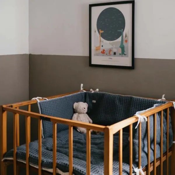 De Koeka Amsterdam Boxbumper – Wafel – Bluestone biedt een stijlvolle en praktische oplossing om de box van je baby extra comfortabel en veilig te maken. De zachte voering beschermt je kindje tegen de harde randen van de box, terwijl de luxe wafelkatoenen buitenkant zorgt voor een elegante uitstraling. De diepe kleur ‘Bluestone’ geeft een tijdloze en moderne touch aan je interieur.