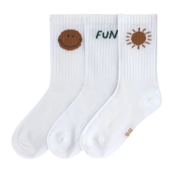 In deze 3-pack zit een paar sokken met een smiley, een zonnetje en de tekst fun.