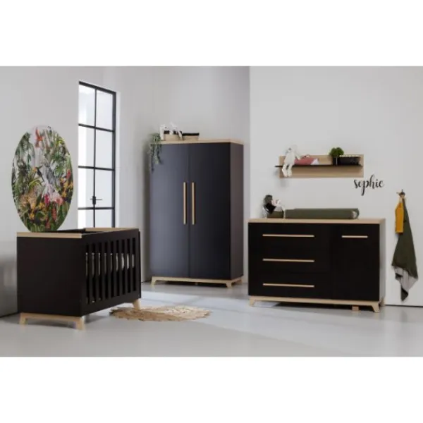 Babykamer Bradford van het merk TWF is een stoere kamer. Deze kamer is gemaakt van MDF voorzien van een walnootmotief. De zwarte accenten en het greeploze design maken deze moderne kamer helemaal af.