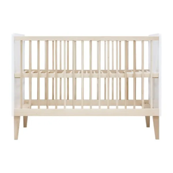De babykamer Indy heeft een eigentijdse uitstraling door de combinatie van wit en naturel gelakte houten accenten. De meubels zijn afgewerkt met beuken houten pootjes die een beetje uit elkaar staan. Dit zorgt er voor dat de meubels een Scandinavische look krijgen.
