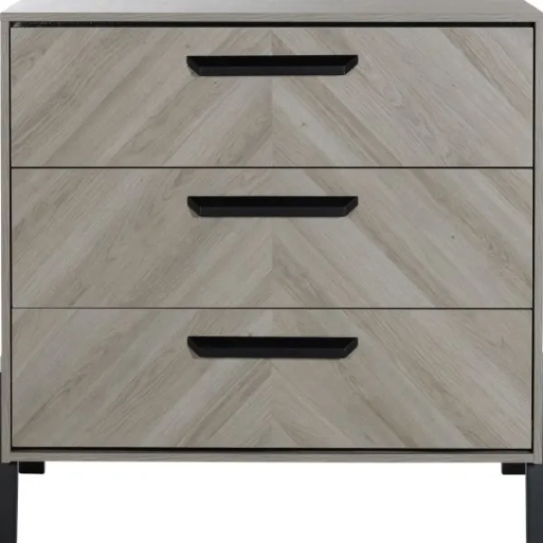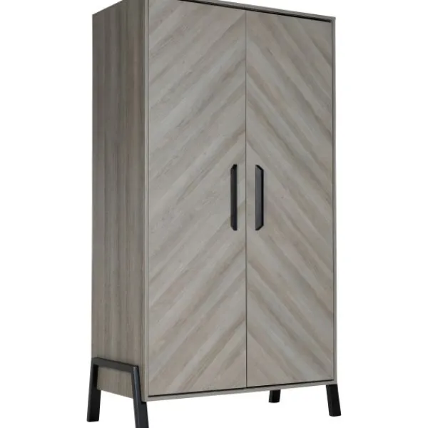 Babykamer Havana van het merk TWF is een echte eye catcher! Deze stoere kamer heeft een prachtig vissengraatmotief gecombineerd met zwarte houten poten dat je kamertje helemaal trendy maakt. Een extra leuk detail zijn de zwarte houten handgrepen op de commode en kledingkast.