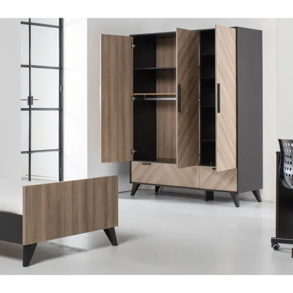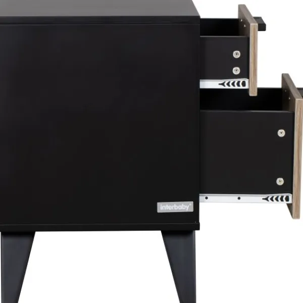 Babykamer Lancaster van het merk Interbaby is een echte eye catcher! Deze stoere kamer combineert een visgraatmotief met zwarte houten poten. Met deze warme, moderne babykamer zit je helemaal goed!