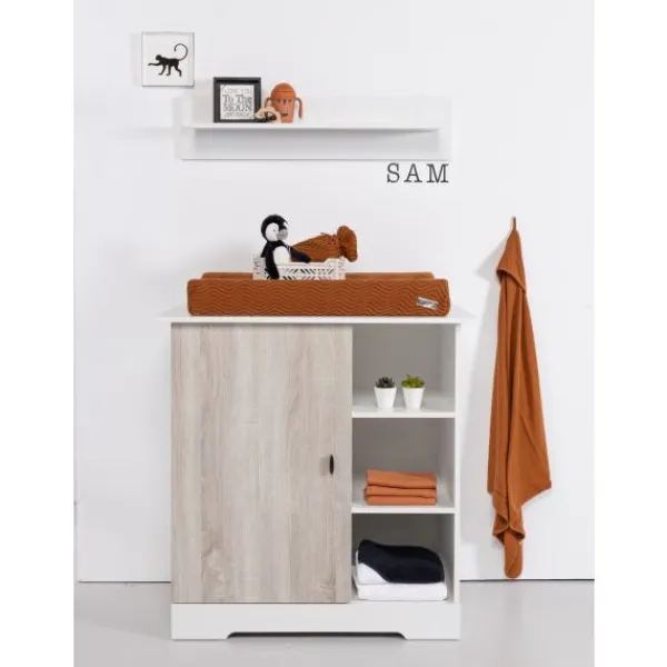 Met de praktische commode ben je volledig voorbereid op het verschonen van je kindje. De commode beschikt over 1 deur en 3 vakken waarin je heel wat spulletjes kwijt kunt. Tevens heeft de commode een roede voor het ophangen van kleertjes.