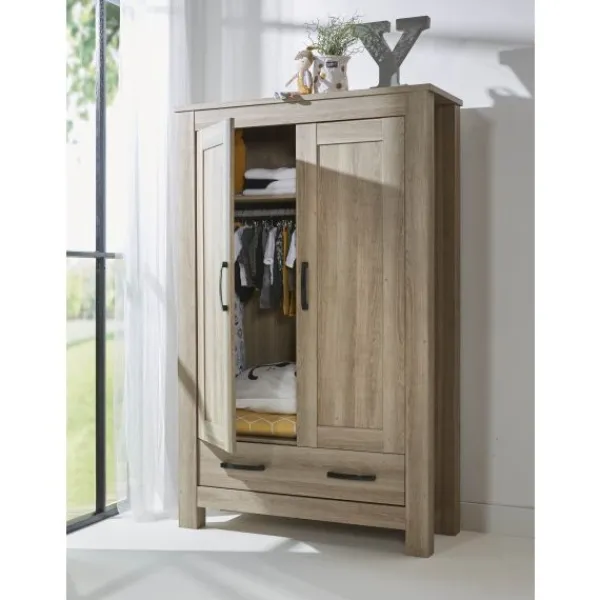 Babykamer Stanford van het merk TWF heeft een robuuste uitstraling en is uitgevoerd in lichtbruin houtdecor.