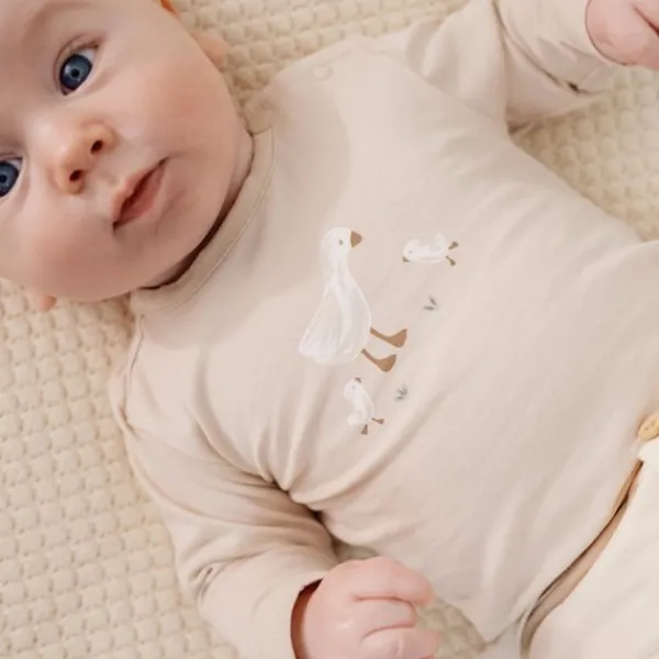 Het Little Dutch T-Shirt Lange Mouw – Little Goose – Maat 50 – Sand is een lief en comfortabel babyshirtje dat perfect is voor de allerkleinsten. Met zijn zachte zandkleur en schattige print van het gansje uit de populaire Little Goose-collectie, brengt dit shirtje direct een rustige en warme sfeer in de garderobe van je kindje.