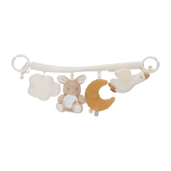 De Little Dutch Newborn Wagenspanner maakt elke wandeling een plezierige ontdekkingstocht voor je baby. Deze zachte wagenspanner is uitgerust met drie vrolijke figuurtjes die bewegen, rammelen en de zintuigen van je kindje prikkelen. Ideaal om aan de kinderwagen of autostoel te bevestigen en onderweg voor vermaak te zorgen.