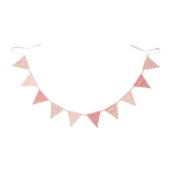 De vlaggetjes zijn gemaakt van een zachte katoenmix en hebben een afwisselend patroon van effen roze tinten en schattige Fairy Floral printjes. Dankzij de duurzame kwaliteit kan de slinger steeds opnieuw gebruikt worden, zowel als decoratief element in de kamer als bij feestjes of verjaardagen.